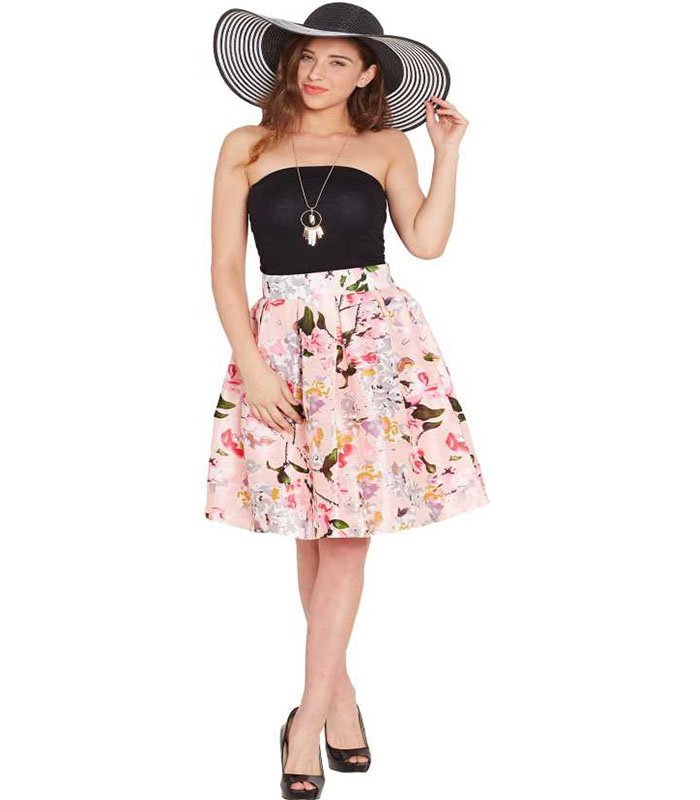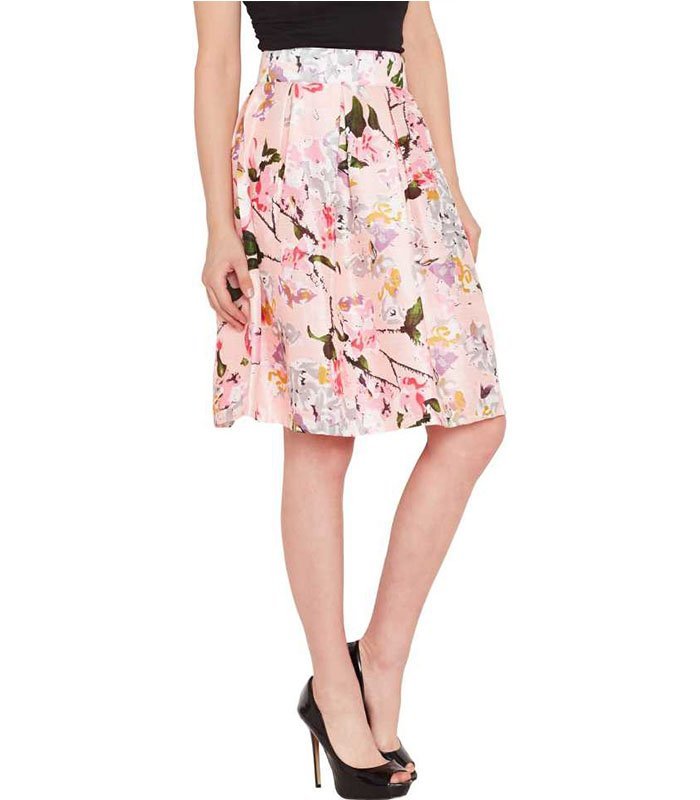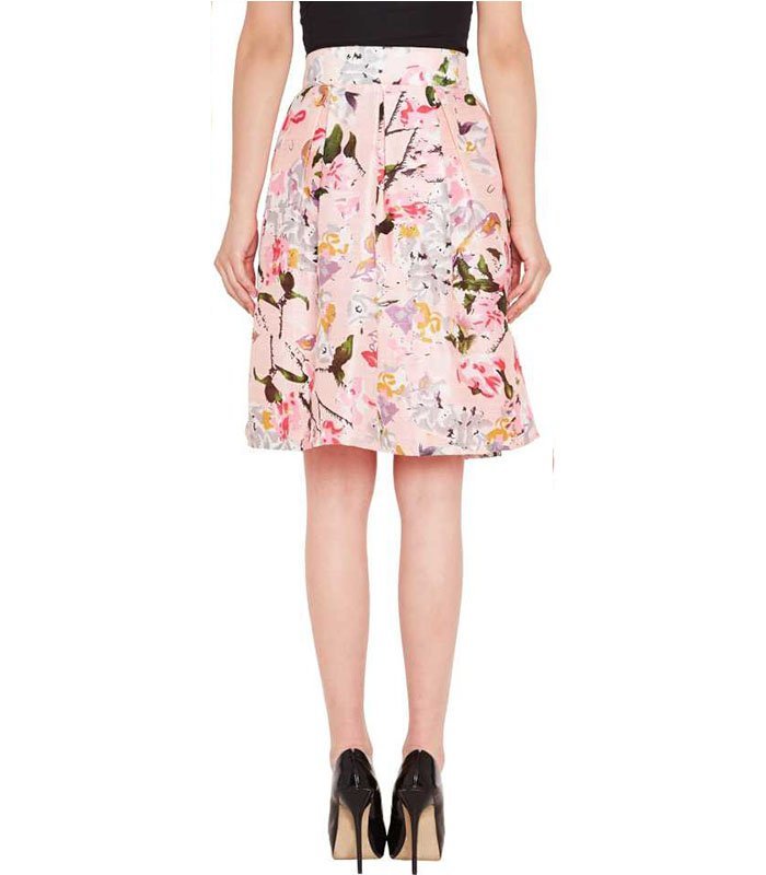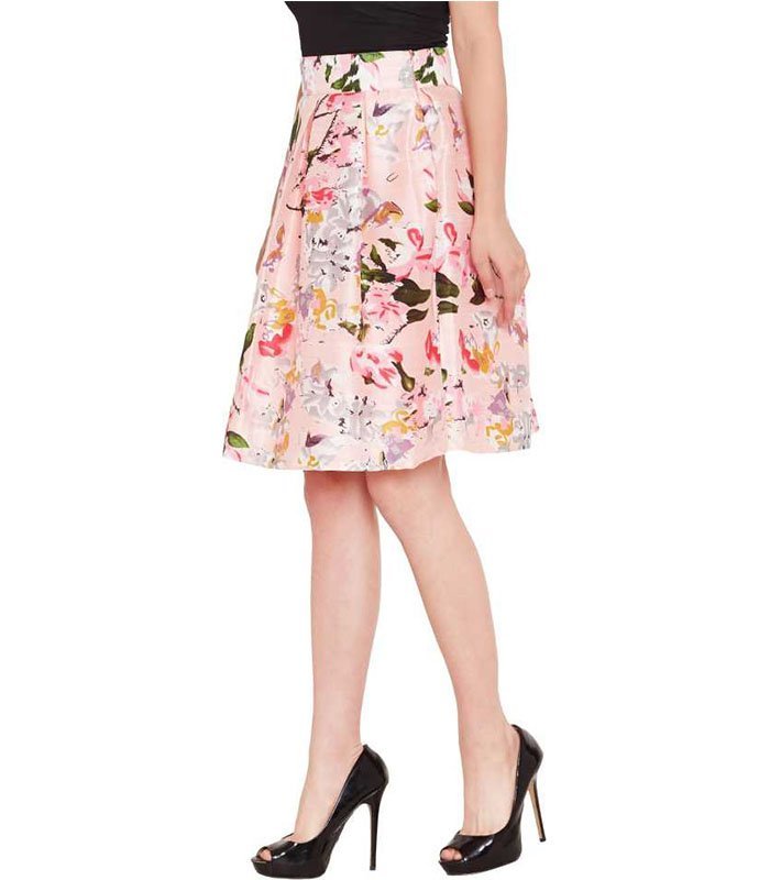 Pink Floral Silk Skirt in Silk fabric, Santoon lining, Loose Fit, Zipper Closure, Flared hemline